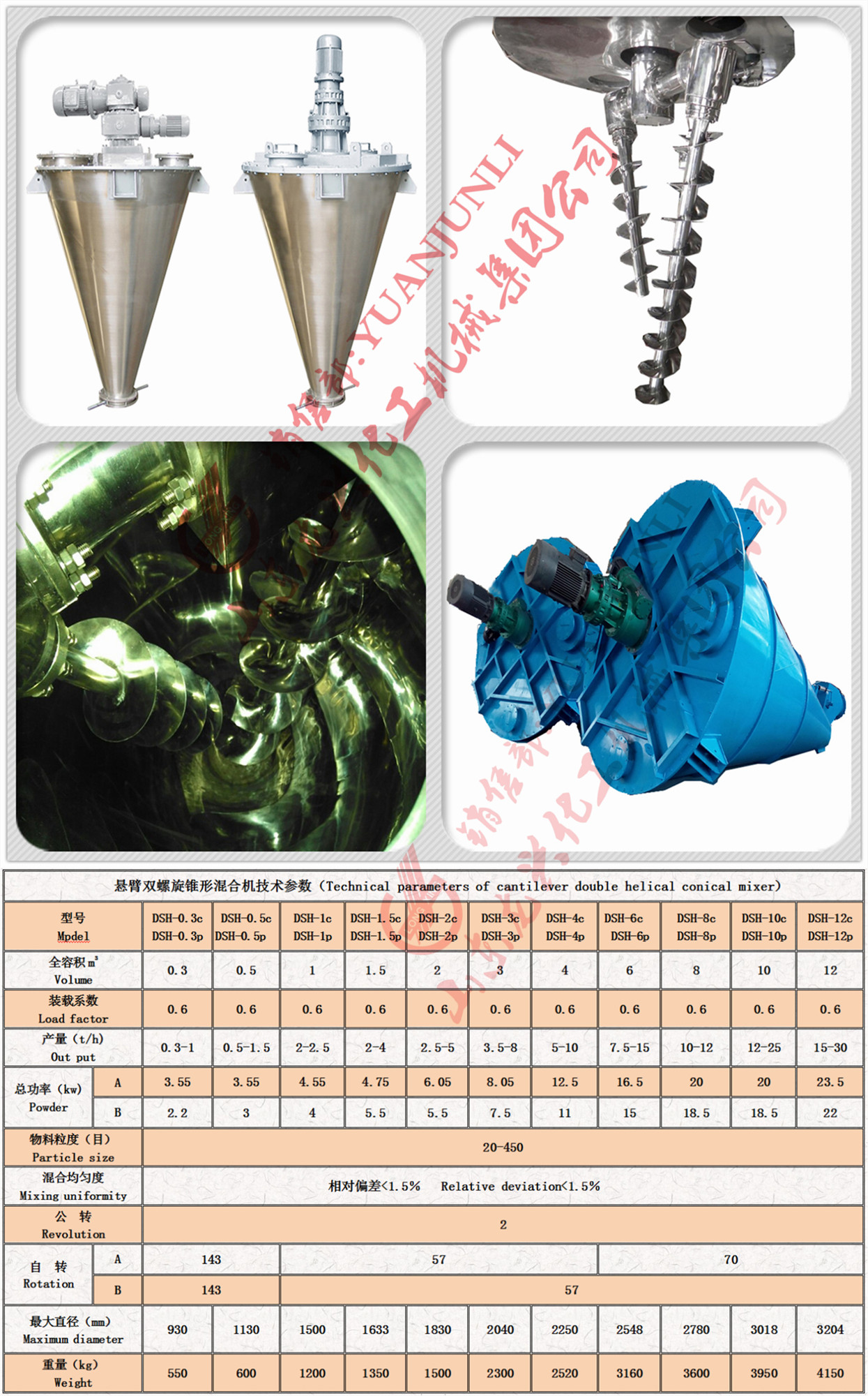 雙螺旋錐形混合機(jī)適用特性: