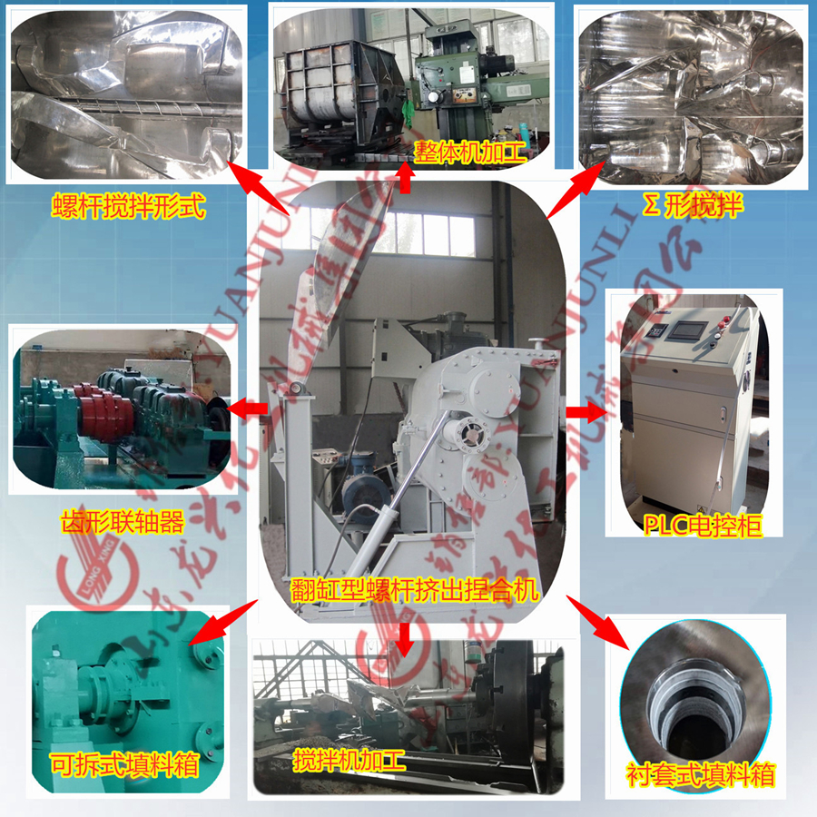 螺桿擠出型捏合機是由一對旋轉(zhuǎn)的Σ型攪拌槳葉與螺桿推送系統(tǒng)互相配合從而產(chǎn)生強烈剪切作用使半干狀態(tài)或橡膠狀粘稠塑料材料能使物料迅速反應(yīng)從而獲得均勻的混合攪拌。